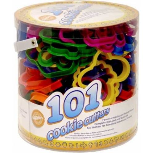 101 kusů vykrajovátek ve tvaru číslic, písmen, geometrických tvarů, atd. Z těsta můžete vyrobit například kostky, kruhy, předměty denní činnosti, atd. Vyrobeny jsou z plastu. Společnost Wilton Enterprises, USA, nabízí nejkomplexnější a nejmodernější výběr v oblasti pečení, zdobení dortů, výroby cukroví, výroby cookies, svatebních, dětských, party a sezónních produktů. Tyto produkty jsou navrženy tak, aby usnadnily práci každému, kdo si užívá vzrušení a radost z podávání něčeho zvláštního a využívání jedinečného stylu a designu. Vykrajovátka jsou snadno omyvatelná, lze je dát i do myčky nádobí.