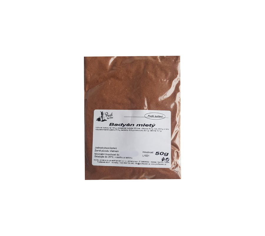 Badyan mletý je zpracováno ze souplodí s lesklými semeny z rostliny badyánu. Balení 50 g.
