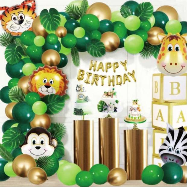 Velkolepá girlanda z balónků v barvách džungle vytvoří vskutku slavnostní atmosféru. Tato dechberoucí girlanda vypadá krásně připevněná na stěně nad stolem jako hlavní dekorace vaší oslavy. Můžete ji přimontovat nad vchod a vytvořit tak velkolepou bránu. Tato elegantní a šik dekorace přitáhne pozornost a potěší všechny hosty. Ideální na křest, narozeniny, ukončení či zahájení školy, výročí nebo jinou oslavu. Díky fenomenální balónkové výzdobě krásně zvýrazníte místo pro focení na památku. Nainstalujte pod girlandu barevně sladěný závěs. Na jeho pozadí položte kytici heliových balónků, připravte bar nebo sladký stůl. Dopřejte svým hostům nezapomenutelnou zábavu při pořizování šťastných fotografií z večírku.