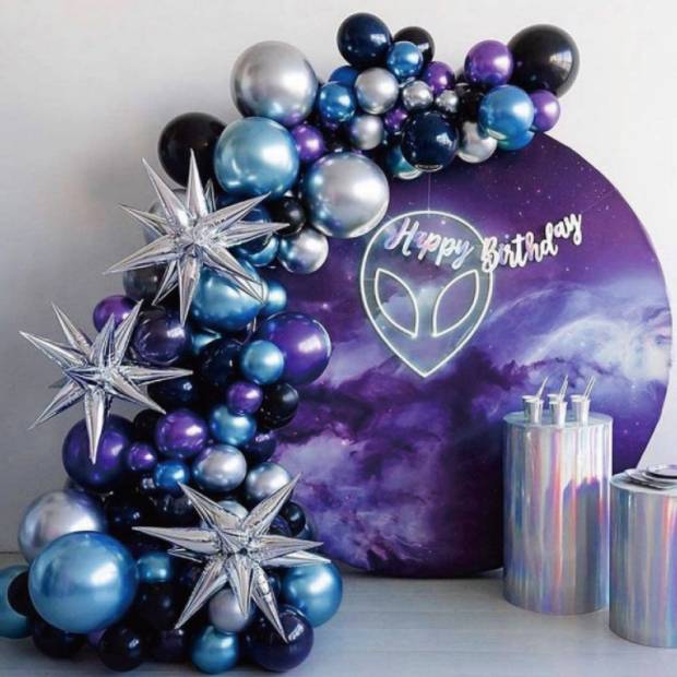 Velkolepá girlanda z balónků s motivem vesmíru vytvoří vskutku slavnostní atmosféru. Tato dechberoucí girlanda vypadá krásně připevněná na stěně nad stolem jako hlavní dekorace vaší oslavy. Můžete ji přimontovat nad vchod a vytvořit tak velkolepou bránu. Tato elegantní a šik dekorace přitáhne pozornost a potěší všechny hosty. Ideální na křest, narozeniny, ukončení či zahájení školy, výročí nebo jinou oslavu. Díky fenomenální balónkové výzdobě krásně zvýrazníte místo pro focení na památku. Nainstalujte pod girlandu barevně sladěný závěs. Na jeho pozadí položte kytici heliových balónků, připravte bar nebo sladký stůl. Dopřejte svým hostům nezapomenutelnou zábavu při pořizování šťastných fotografií z večírku.