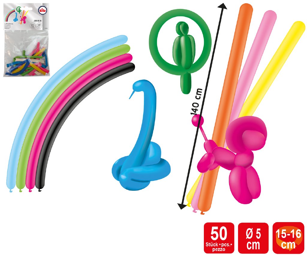 Modelovací balónky pro tvarování zvířátek, květin a dalšího. V balení 50 ks. Délka 140 cm.