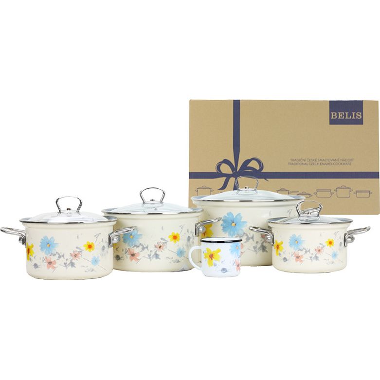 Sada smaltovaného nádobí v dárkové krabici.5-dílná sada obsahuje:Hrnec 16 cm (2,1l)