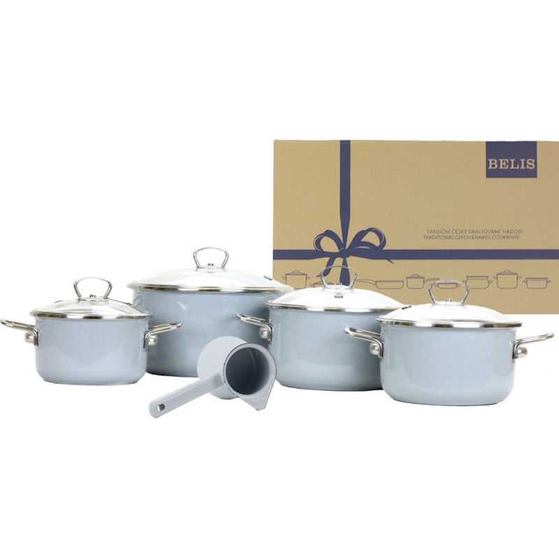 Belis BELIS Sada smaltovaného nádobí PREMIUM ŠEDÝ 5-dílná