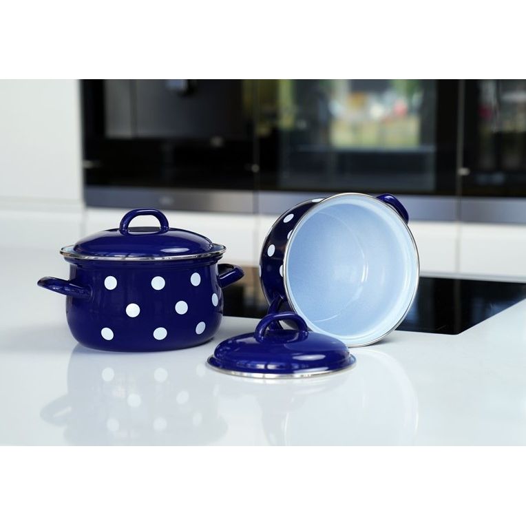 Smaltované nádobí řady PUNTÍK modrý se pyšní výjimečným a hravým designem, a svou veselou barvou evokuje veselé chvíle, hravost a nostalgii po letních prázdninových pobytech na venkově