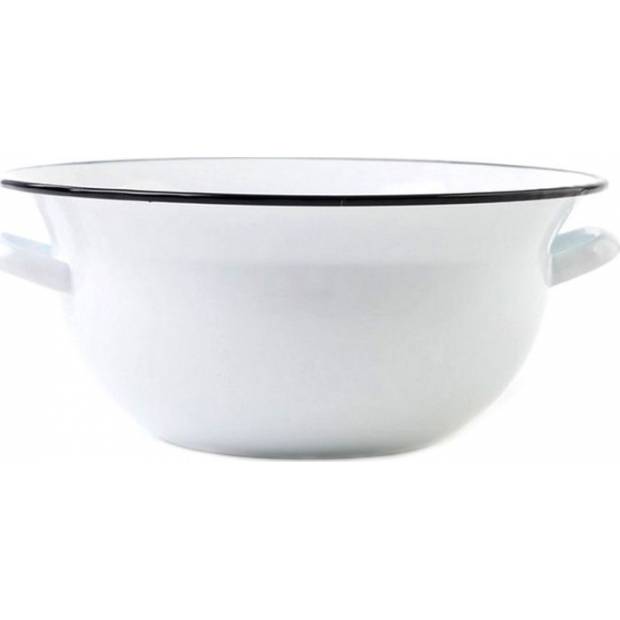 Smaltovaná mísa s průměrem 32 cm má povrch kvalitního bílého smaltu a jemný květinový dekor