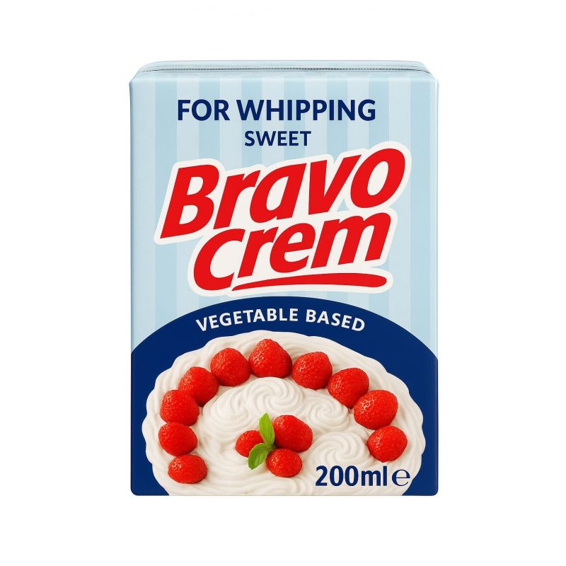 Bravo Cream je rostlinná alternativní šlehačka určená pro milovníky dezertů, kteří chtějí vynechat mléčné ingredience. Při vyšlehání získá nadýchanou strukturu, která je ideální pro dorty, dortové náplně, poháry i ovocné zákusky. Díky své složce rostlinných tuků se dobře stabilizuje a udrží objem. Produkt neobsahuje lepek a je vhodný pro všechny, kdo preferují bezmléčné nebo veganské varianty.