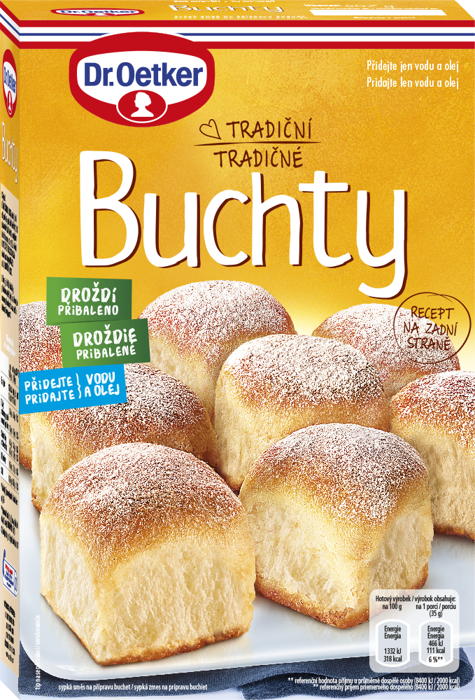 Připravte si české buchty jako od babičky s touto sypkou směsí od Dr. Oetkera. Obsahuje všechny důležité suroviny, díky kterým zvládne buchty upéct skutečně každý. Z jednoho balení upečte 25 - 30 buchet. Můžete je naplnit mákem, tvarohem, marmeládou, povidly nebo z nich vyrobit buchtičky se šodó.