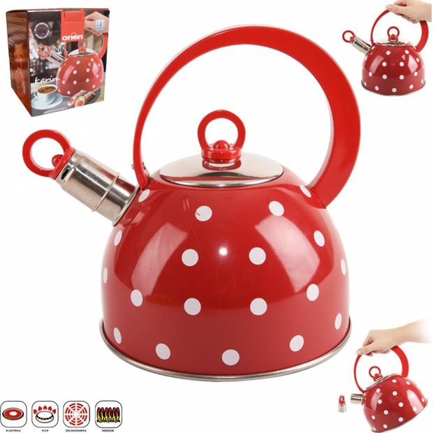 Čajník s píšťalou červený 1,8l Karin - Orion