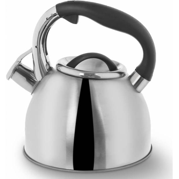 Moderní matný nerezový čajník s černými plastovými prvky, je opatřen odklápěcí píšťalkou, která ohlásí vařící se vodu. Rovné dno zajistí rychlý rozvod tepla a ohřev vody nejen na kávu, čaj na všech typech spotřebičů, včetně indukce.