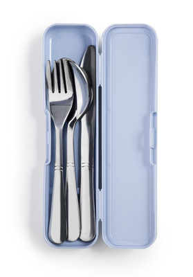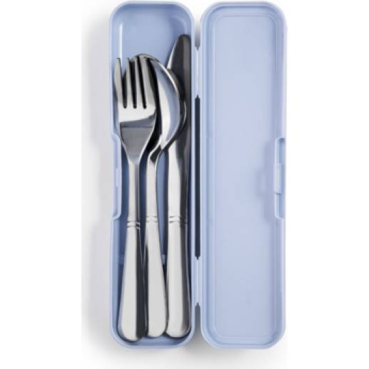 Sada cestovních příborů uložených v praktickém lehkém pouzdře. Set obsahuje nůž, vidličku a lžíci.