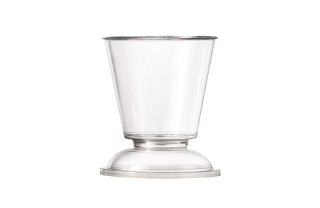 Hranatý pohár má zkosené strany a díky výrobnímu materiálu (PS), který připomíná plexisklo a má zelenkavý nádech se v něm zajímavě odráží světlo a vytváří se duhové odlesky. Pohár vydrží teploty max. 40°C. Neservírujte v něm horké pokrmy. Rozměry: 7,2 x 7,2 x 7,9 cm.