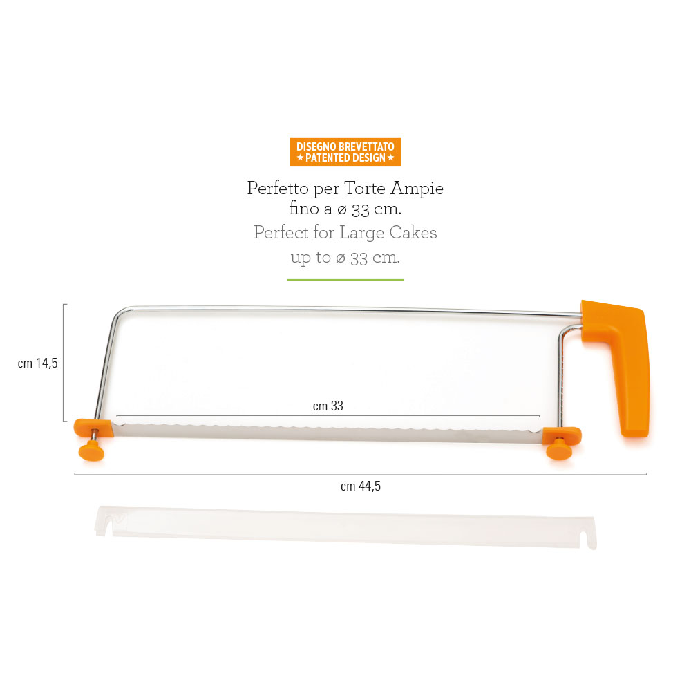 Cukrářská pilka pro přesné krájení dortů. Délka pily 42 cm, délka ostří 32 cm.