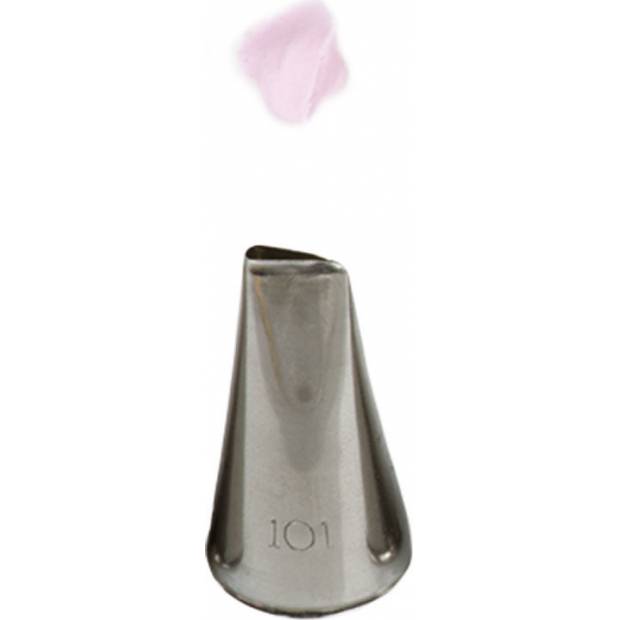 Kovová cukrářská zdobící špička 101 vám zaručí přesnou a jedinečnou výzdobu. Špičku můžete použít se zdobícím sáčkem opakovaně. Je vyrobená z nerezové oceli, na povrchu nezůstávají skvrny od tuku. Není vhodná pro mytí v myčce.
