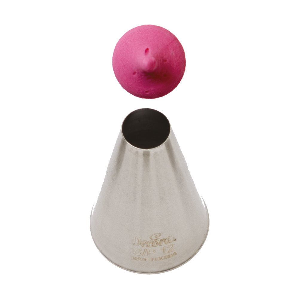Kovová cukrářská zdobící špička kulatá S/P12 vám zaručí přesnou a jedinečnou výzdobu. Špičku můžete použít se zdobícím sáčkem opakovaně. Je vyrobená z nerezové oceli, na povrchu nezůstávají skvrny od tuku. Není vhodná pro mytí v myčce.