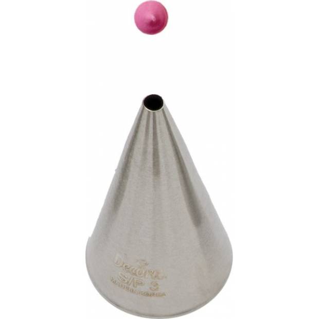 Kovová cukrářská zdobící špička kulatá S/P3 vám zaručí přesnou a jedinečnou výzdobu. Špičku můžete použít se zdobícím sáčkem opakovaně. Je vyrobená z nerezové oceli, na povrchu nezůstávají skvrny od tuku. Není vhodná pro mytí v myčce.