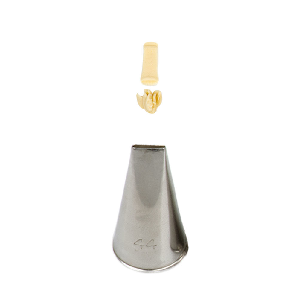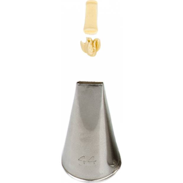 Kovová cukrářská zdobící špička plochá 44 vám zaručí přesnou a jedinečnou výzdobu. Špičku můžete použít se zdobícím sáčkem opakovaně. Je vyrobená z nerezové oceli, na povrchu nezůstávají skvrny od tuku. Není vhodná pro mytí v myčce.