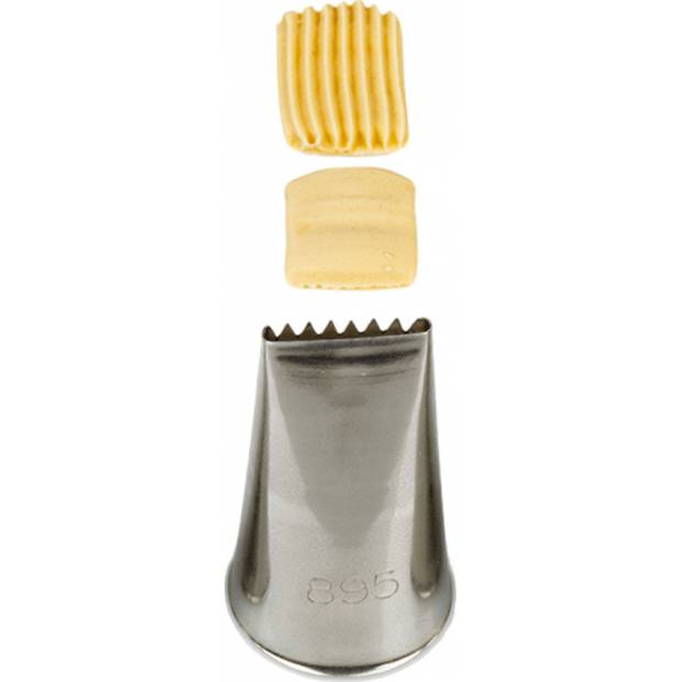Kovová cukrářská zdobící špička plochá 895/2B pro snadné vytváření kreativních prvků z krému. Špičku můžete použít se zdobícím sáčkem opakovaně. Je vyrobená z nerezové oceli, na povrchu nezůstávají skvrny od tuku. Není vhodná pro mytí v myčce.