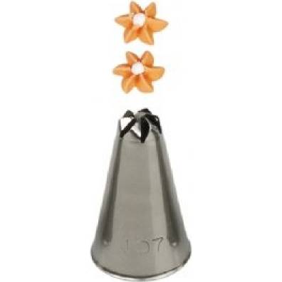 Kovová cukrářská zdobící špička řezaná 107 vám zaručí přesnou a jedinečnou výzdobu. Špičku můžete použít se zdobícím sáčkem opakovaně. Je vyrobená z nerezové oceli, na povrchu nezůstávají skvrny od tuku. Není vhodná pro mytí v myčce.