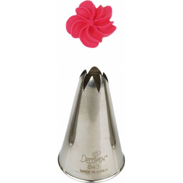 Kovová cukrářská zdobící špička řezaná 856/1C vám zaručí přesnou a jedinečnou výzdobu. Špičku můžete použít se zdobícím sáčkem opakovaně. Je vyrobená z nerezové oceli, na povrchu nezůstávají skvrny od tuku. Není vhodná pro mytí v myčce.