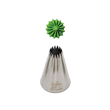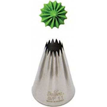 Kovová cukrářská zdobící špička řezaná S/F11 vám zaručí přesnou a jedinečnou výzdobu. Špičku můžete použít se zdobícím sáčkem opakovaně. Je vyrobená z nerezové oceli, na povrchu nezůstávají skvrny od tuku. Není vhodná pro mytí v myčce.