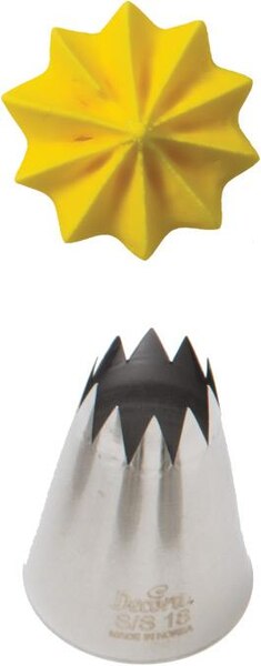 Kovová cukrářská zdobící špička řezaná S/S18 vám zaručí přesnou a jedinečnou výzdobu. Špičku můžete použít se zdobícím sáčkem opakovaně. Je vyrobená z nerezové oceli, na povrchu nezůstávají skvrny od tuku. Není vhodná pro mytí v myčce.