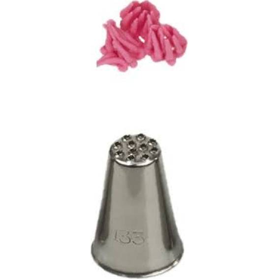 Kovová cukrářská zdobící špička víceotvorová 233 tráva vám zaručí přesnou a jedinečnou výzdobu v podobě trávy či rovnou celého trávníku. Špičku můžete použít se zdobícím sáčkem opakovaně. Je vyrobená z nerezové oceli, na povrchu nezůstávají skvrny od tuku. Není vhodná pro mytí v myčce.