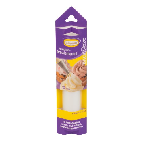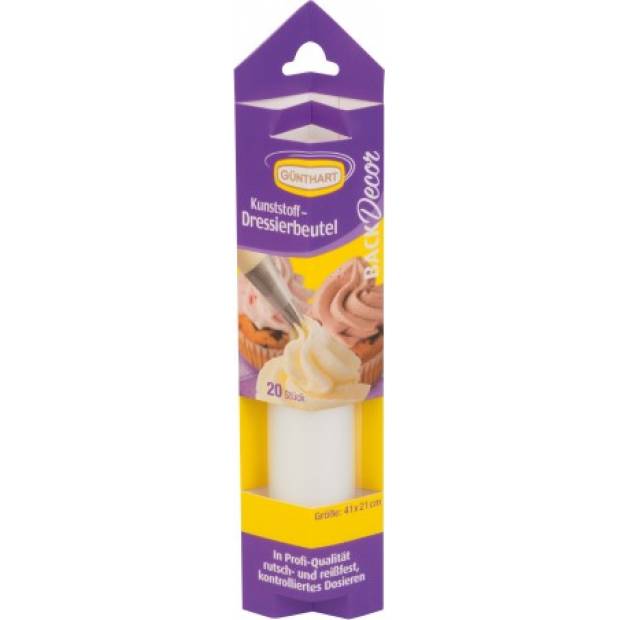 Jednorázové zdobící sáčky vám usnadní práci při zdobení dortů, cupcaků, makronek, ale i nejrůznějších slaných chuťovek. Zdobící sáček má již připravený otvor pro zdobení, případně lze použít vhodnou zdobící špičku. Po použití jej stačí jednoduše vyhodit do tříděného odpadu. V balení 20 ks o rozměrech 65 x 42 x 288 mm.
