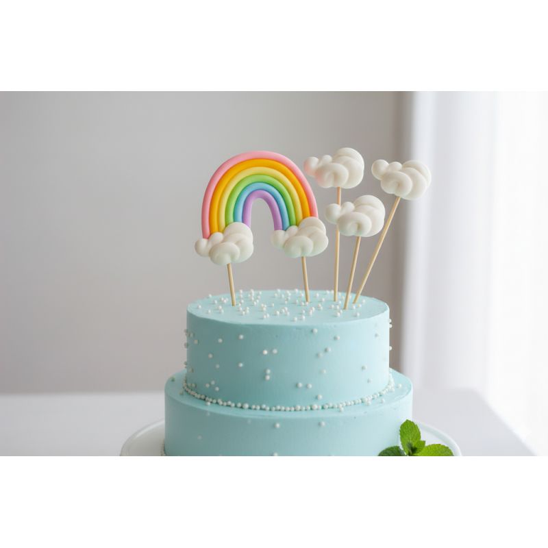 Cukrová dekorace na dort zápichy duha a obláčky.Vhodné na všechny typy dortu, obsahuje špejle díky kterým ozdoby jednoduše zapíchnete do dortíku.