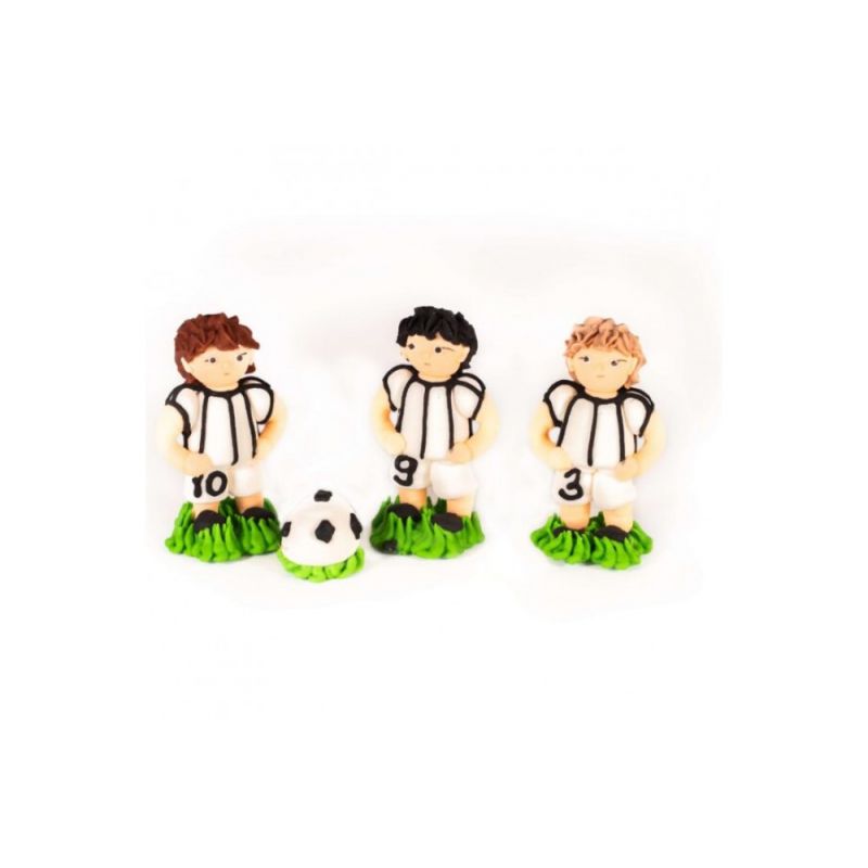 Cukrové figurky v podobě fotbalistů s kopačákem.