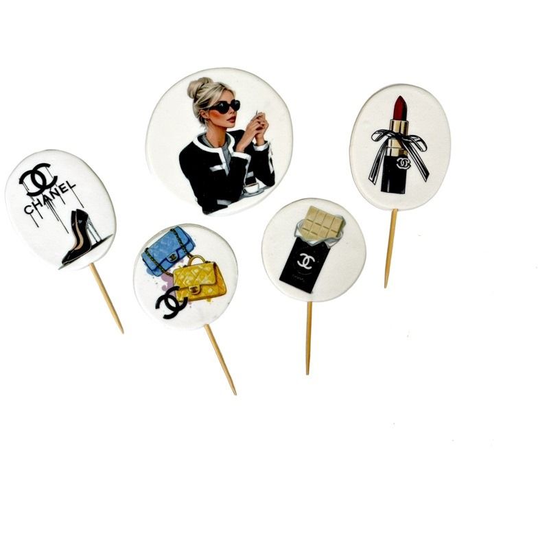Dortové zápichy jsou dekorativní prvky, které se umisťují na korpus. To jim dodává osobní charakter a zdůrazňuje typ a důležitost oslavované události. Z tohoto důvodu se mohou toppery od sebe výrazně lišit, protože se musí přizpůsobit stylu každé příležitosti. Zápichy s motivem Coco Chanel potěší každou ženu, která miluje módu a tuto slavnou módní ikonu. Jednotlvé prvky z lehkého materiálu, umístěné na tenkých tyčkách, lze snadno zapíchnout do dortů, cupcaků nebo jiných dezertů. Můžete je libovolně uspořádat a vytvořit tak své vlastní kompozice. Dort díky nim získá jedinečný vzhled bez nutnosti použití složitých cukrářských technik.
