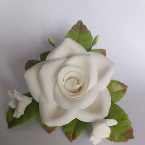 Tato velká cukrová růže je ručně tvarovaná dekorace, která dodá každému dortu jedinečné kouzlo. Vyrobena z vysoce kvalitního fondánu, dokonale napodobuje přirozený vzhled okvětních lístků. Skvěle se hodí na svatební, dorty k prvnímu přijímání a narozeninové dorty. Tato růže byla vyrobena tak, aby si zachovala perfektní proporce a odolnost. Lze ji jemně tónovat nebo zalepit potravinářským lakem, takže se snadno hodí k jakémukoli designu dortu.