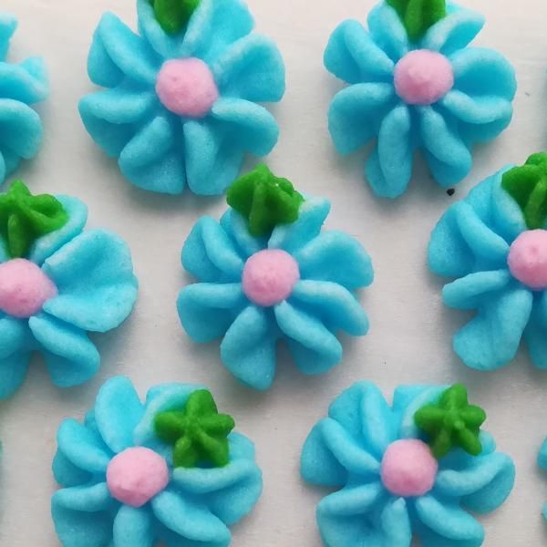 Cukrové květy modré s růžovým středem. Balení 30 ks.