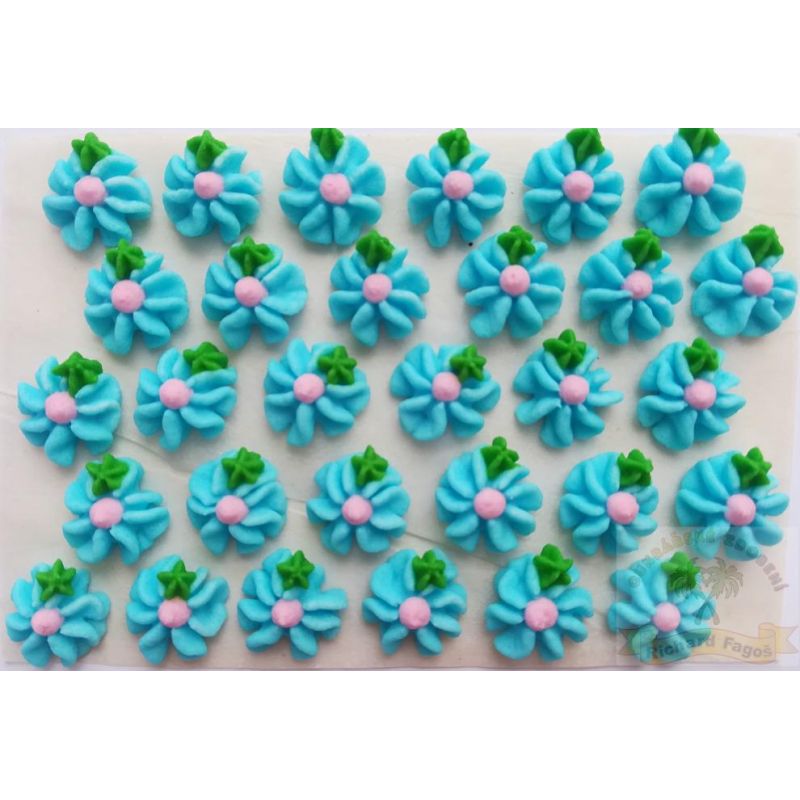 Cukrové květy modré s růžovým středem na platíčku 30ks - Fagos