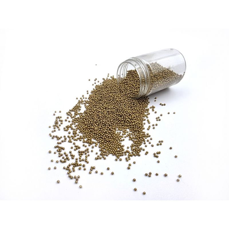 Zlaté metalické cukrové perličky jsou krásným doplňkem hladkého povrchu dortů. Dají se s nimi zdobit i perníčky, drobné cukroví, muffiny nebo dorty. Jedná se o univerzální dekorace, které vám pomohou doladit vaše chutné pečivo. Další obrovskou výhodou perel je jejich snadná aplikace. Stačí je položit na vámi vybraný povrch a je hotovo. Perly se perfektně hodí k cukrové pastě a dalším. Lze je kombinovat s různými krémy. V naší nabídce najdete jemné cukrové perly, které lze bez obav konzumovat i s dezertem. Pokud zdobení nasypete na vláčný krém, vlhkost z něj může posypek změkčit. Ale pozor, pokud bude zdobení na vlhkém krému delší dobu, může se z posypku uvolnit i barvivo a to na povrch krému. Pokud chcete, aby větší části dekorace drželi například na potahovém dortu, můžete tento druh zdobení k dortům lepit polotuhou čokoládou, nebo glazurou na perníčky. s posypky pracujte nejlépe nad miskou, či plechem s okrajem.