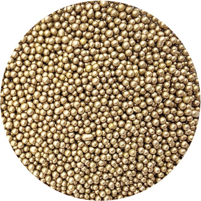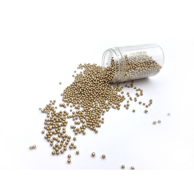 Zlaté metalické cukrové perličky jsou krásným doplňkem hladkého povrchu dortů. Dají se s nimi zdobit i perníčky, drobné cukroví, muffiny nebo dorty. Jedná se o univerzální dekorace, které vám pomohou doladit vaše chutné pečivo. Další obrovskou výhodou perel je jejich snadná aplikace. Stačí je položit na vámi vybraný povrch a je hotovo. Perly se perfektně hodí k cukrové pastě a dalším. Lze je kombinovat s různými krémy. V naší nabídce najdete jemné cukrové perly, které lze bez obav konzumovat i s dezertem. Pokud zdobení nasypete na vláčný krém, vlhkost z něj může posypek změkčit. Ale pozor, pokud bude zdobení na vlhkém krému delší dobu, může se z posypku uvolnit i barvivo a to na povrch krému. Pokud chcete, aby větší části dekorace drželi například na potahovém dortu, můžete tento druh zdobení k dortům lepit polotuhou čokoládou, nebo glazurou na perníčky. s posypky pracujte nejlépe nad miskou, či plechem s okrajem.
