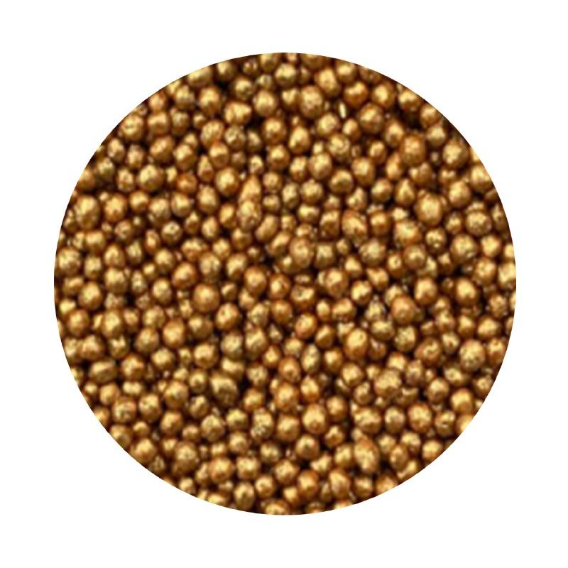 Sypání má podobu drobných kuliček. Mají pouze 2 mm v průměru a mají krásnou zlatou metalickou barvu. Jedná se o sladký posyp z řady unikátních produktů od ILOVECAKES. Nemění chuť zdobených výrobků, je vyroben z přírodních barviv a má chuť cukrové pasty. Jedná se o velmi univerzální zdobení, ideální na dekorování cupcaků, sušenek, perníčků, muffinů, dortů, zákusků, pečiva, dortů, pralinek, lanýžů, čokolády, zmrzliny a mnoha dalších sladkých výrobků, zejména těch s krémy a polevou. Je vhodný pro každou příležitost: svatba, karneval, narozeniny, Den matek a mnoho dalších. Baleno v praktické šroubovací dóze. Pokud zdobení nasypete na vláčný krém, vlhkost z něj může posypek změkčit. Ale pozor, pokud bude zdobení na vlhkém krému delší dobu, může se z posypku uvolnit i barvivo a to na povrch krému. Pokud chcete, aby větší části dekorace drželi například na potahovém dortu, můžete tento druh zdobení k dortům lepit polotuhou čokoládou, nebo glazurou na perníčky. s posypky pracujte nejlépe nad miskou, či plechem s okrajem.
