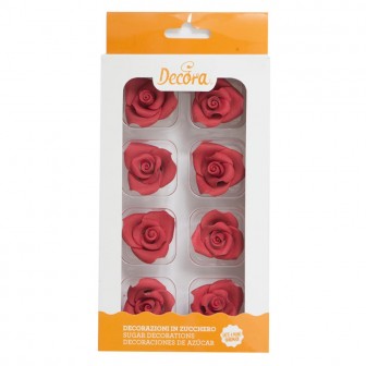 Hotové cukrové růže v červené barvě. Ručně vyráběné s přírodními extrakčními barvivy. Ideální pro zdobení dortů, košíčků, cukrovinek a sladkostí snadno a rychle, bez další složité úpravy. Balení obsahuje 8 kusů.