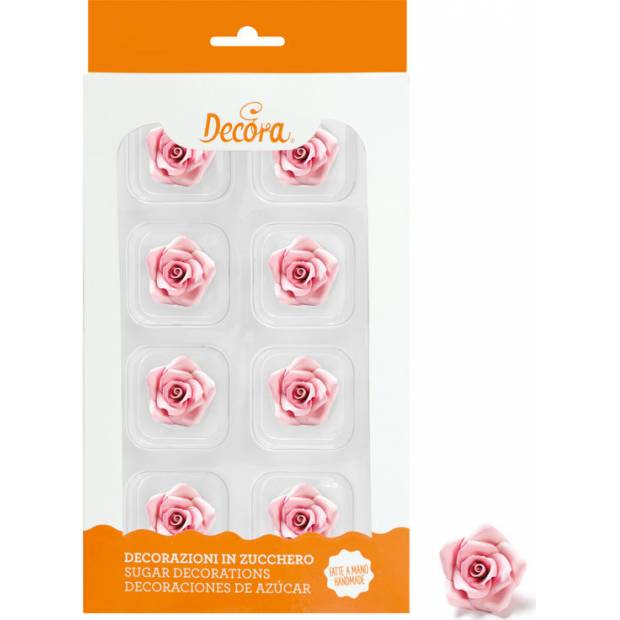 Cukrové růže růžové 8ks malé - Decora