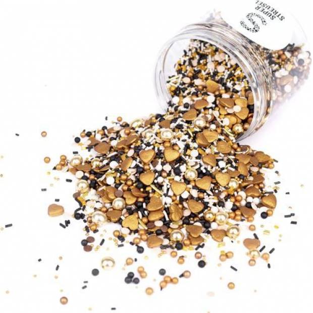 Velký svůdce mezi našimi milostnými mixy. Musíte si na něj dávat pozor. Je těžké mu odolat. Záblesk sem, mrknutí tam, šibalský úsměv a zlaté srdce. Casanova vás během chvíle okouzlí a není úniku. Casanova se cítí obzvláště dobře s čokoládou – lichotí jeho pleti. Zlaté čokoládové kuličky a srdce, konfetové posypy v jemné krémové a hnědé barvě. Plus bronzové a černé korálkové posypy spolu se sladkými krystalovými posypy. Casanova se svými svůdnými tlumenými tóny je také obzvláště oblíbená ke Dni otců nebo mužským narozeninám. Složení Kuličky: Naše střední a velké kuličky jsou všechny lahodně plněné jemnou čokoládou nebo křupavé křupavé. Míchání: Během přepravy se velké posypky a čokoládové kuličky obvykle trhají doprostřed plechovky. Abyste mohli obdivovat plnou nádheru posypek, stačí plechovku vyklopit do misky a nechat se okouzlit :)