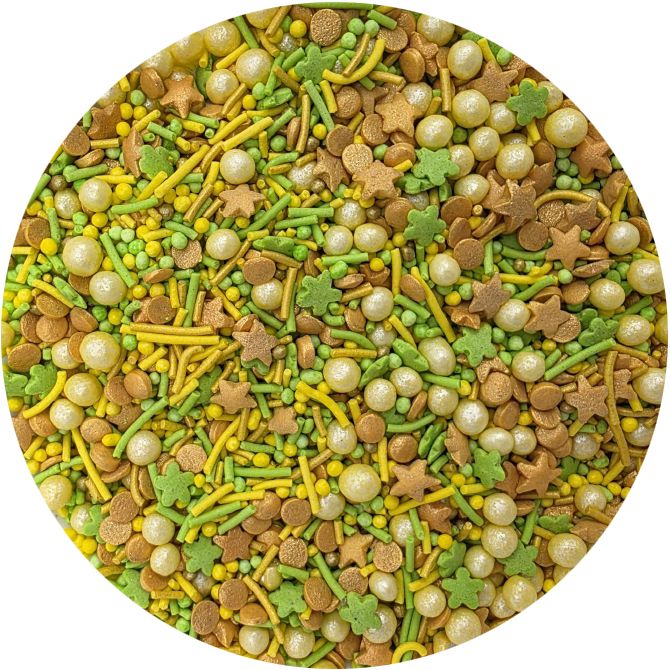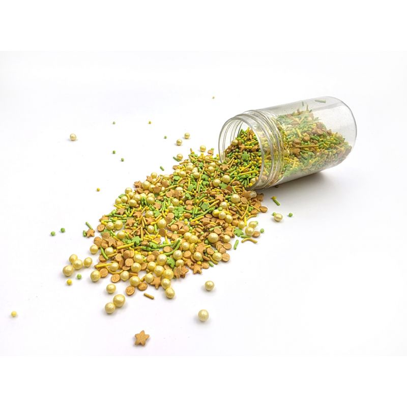 V praktické dóze najdete mix barevných srdíček, zelených čtyřlístků, žlutých cukrových tyčinek a drobného máčku. Směs oceníte jako doplněk nejrůznějších dezertů na Velikonoce, svátek sv. Patrika, dortíků na babyshower, pro párty v jarním stylu, apod. I LOVE CAKES v různých tvarech vám pomohou zajímavým způsobem ozdobit muffiny, dorty, koláče, dezerty, cake pops, sušenky a další sladkosti. Posypky budou krásnou ozdobou pečiva na nejrůznější párty, výročí nebo na dort k narozeninám. Cukrové posypky se budou hodit při přípravě sladkostí na sladký stůl. Posypky jsou baleny v praktické nádobě pro snadné dávkování a skladování. Skladujte na chladném a suchém místě mimo dosah slunečního záření.Pokud zdobení nasypete na vláčný krém, vlhkost z něj může posypek změkčit. Ale pozor, pokud bude zdobení na vlhkém krému delší dobu, může se z posypku uvolnit i barvivo a to na povrch krému. Pokud chcete, aby větší části dekorace drželi například na potahovém dortu, můžete tento druh zdobení k dortům lepit polotuhou čokoládou, nebo glazurou na perníčky. S posypkami pracujte nejlépe nad miskou, či plechem s okrajem."