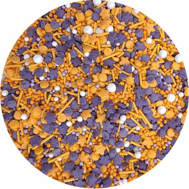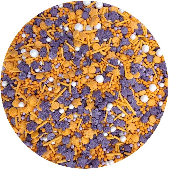 Na Halloween můžete připravit pohoštění, zákusky a dorty zdobené tímto perfektním tématickým sypáním. Posypky na dorty, sušenky a dezerty v různých tvarech a texturách v odstínech oranžové, stříbrné, bílé a černé. Lesklé perly, posypky, konfety dodávají kouzlo dortům, cupcakes, sušenkám, muffinům a dalšímu pečenému zboží. Takto zdobené dezerty vzbudí obdiv vašich hostů a potěší nejen ty nejmenší. Pokud zdobení nasypete na vláčný krém, vlhkost z něj může posypek změkčit. Ale pozor, pokud bude zdobení na vlhkém krému delší dobu, může se z posypku uvolnit i barvivo a to na povrch krému. Pokud chcete, aby větší části dekorace drželi například na potahovém dortu, můžete tento druh zdobení k dortům lepit polotuhou čokoládou, nebo glazurou na perníčky. s posypky pracujte nejlépe nad miskou, či plechem s okrajem.