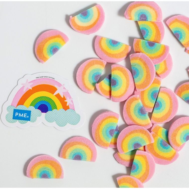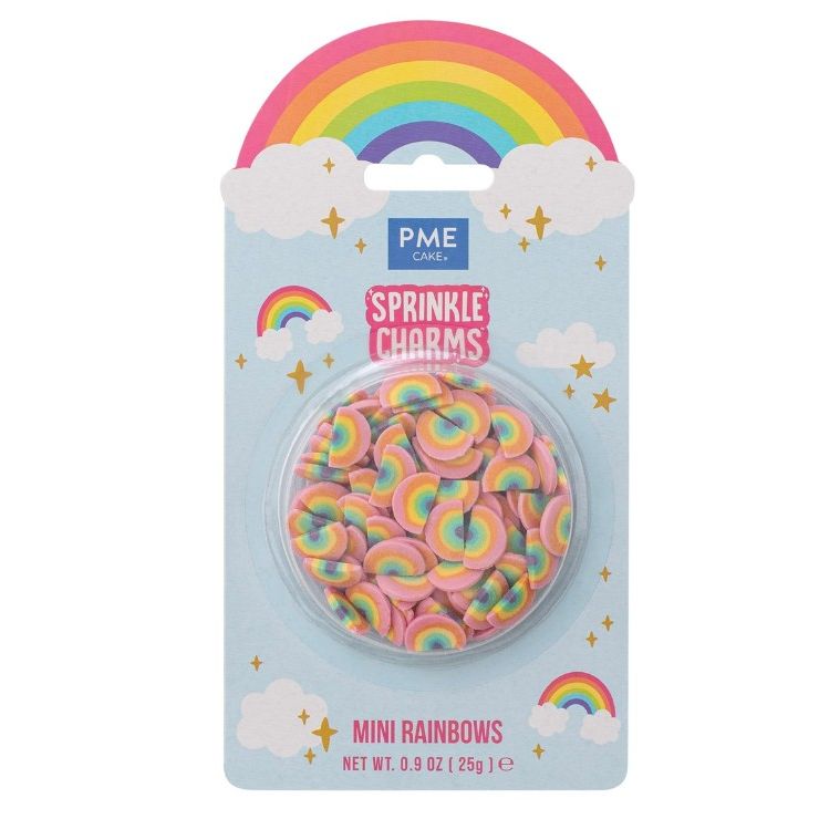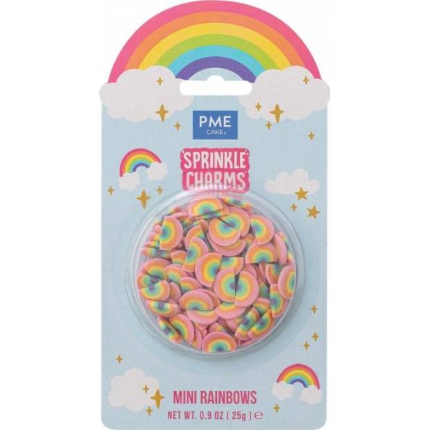 Mini duhové Sprinkle Charms od PME rozzáří každý dort i cupcake veselými barvami a hravým motivem během pár vteřin.