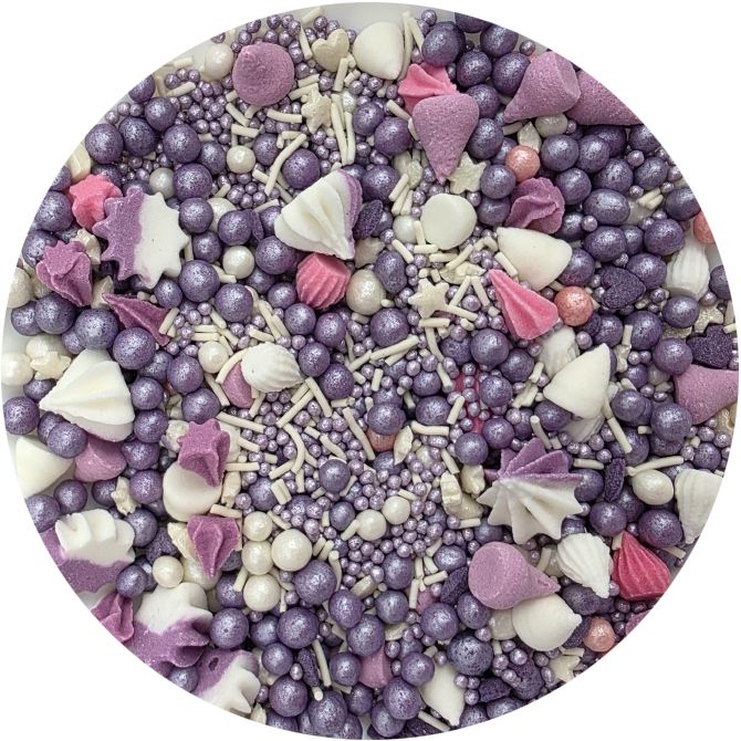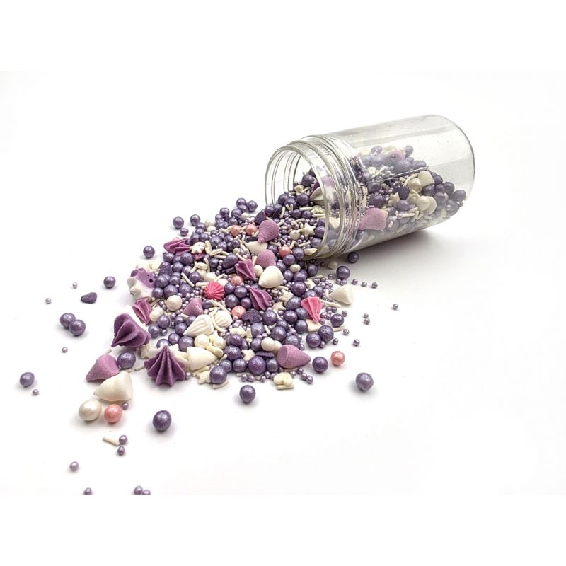 Fialový mix cukrového sypání oceníte jako doplněk nejrůznějších dortů, rolád, dortíků pro párty, na narozeniny, křtiny, apod. I LOVE CAKES cukrové sypání v mnoha barvách a tvarech vám pomohou zajímavým způsobem ozdobit muffiny, dorty, koláče, dezerty, cake pops, sušenky a další sladkosti. Posypky budou krásnou ozdobou pečiva na nejrůznější párty, výročí nebo na dort k narozeninám. Budou se skvěle hodit při přípravě sladkostí na slavnostní stůl. Posypky jsou baleny v praktické nádobě pro snadné dávkování a skladování. Skladujte na chladném a suchém místě mimo dosah slunečního záření. Pokud zdobení nasypete na vláčný krém, vlhkost z něj může posypek změkčit. Ale pozor, pokud bude zdobení na vlhkém krému delší dobu, může se z posypku uvolnit i barvivo a to na povrch krému. Pokud chcete, aby větší části dekorace drželi například na potahovém dortu, můžete tento druh zdobení k dortům lepit polotuhou čokoládou, nebo glazurou na perníčky. s posypky pracujte nejlépe nad miskou, či plechem s okrajem.