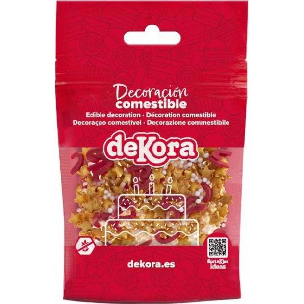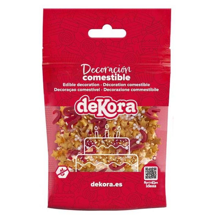 SLAVNOSTNÍ A BAREVNÁ VÁNOČNÍ DEKORACE: Dodá vašim dezertům kouzelný a veselý nádech s touto směsí vánočních cukrových konfet v různých tvarech, jako jsou červené hůlky, perleťově zlaté hvězdičky a bílé kuličky, ideální pro vytvoření sváteční atmosféry v každém soustu. VHODNÉ PRO VŠECHNY DRUHY DEZERTŮ A ZMRZLINY: Ideální pro zdobení muffinů, sušenek, sušenek, dortů, muffinů, cake pops a také pro dodání křupavého a originálního nádechu zmrzlině a jogurtům. BEZ LEPKU, BEZ LAKTÓZY A VHODNÉ PRO VEGETARIÁNY: Bezpečné cukrové konfety pro sdílení s rodinou a přáteli, přizpůsobené různým potravinovým potřebám a ideální pro bezstarostné vychutnání každého. PRAKTICKÝ 100G BLISTR SE ZIPEM: Samouzavírací nádoba udržuje posypky čerstvé a křupavé po každém použití, což umožňuje jejich uchování v perfektním stavu pro další výtvory. Product Dekora, standard v oblasti zdobení dortů a kreativního pečení, s kvalitními surovinami a designem navrženým tak, aby si mladí i staří užili kouzlo Vánoc v kuchyni. cukr, rýžová mouka, voda, slunečnicový olej s vysokým obsahem kyseliny olejové, bramborový škrob, leštící látka E904, barvivo E172, leštící látka E414, aroma, barviva E129, E100, E133 Hmotnost: 100 g Nutriční hodnoty ve 100 g: energie 1756 kJ/414 kcal, tuky 4 g (z toho nasycené 0,3 g), sacharidy 95 g (z toho cukry 87 g), bílkoviny 0,5 g, sůl 0 g