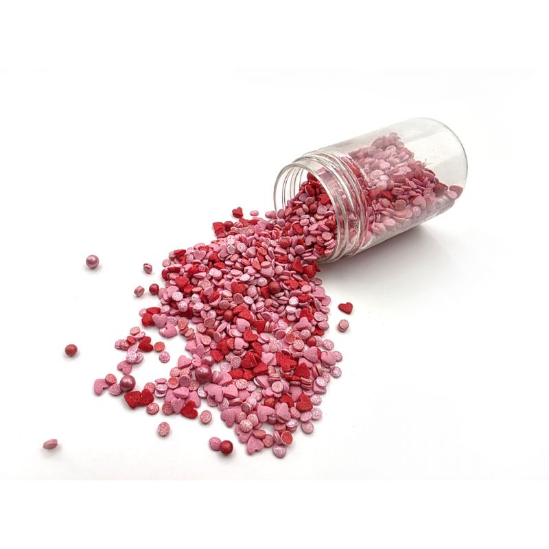 Už nemusíte hledat originální, lahodnou a poutavou cukrářskou dekoraci, která oživí vaše valentýnské pečení. Naše ozdobné cukrářské posypky ve tvaru červených a růžových srdíček a také mixu barevnýh perliček jsou perfektním řešením pro Valentýna a jiné příležitosti! Tyto okouzlující posypky ve tvaru srdce dodají vašim sušenkám, dortům, muffinům a dalším dezertům jedinečný nádech. Červená a růžová srdíčka jsou produktem, který se vyznačuje svým decentním, elegantním vzhledem a výjimečnou chutí. Jejich krásná barva bude perfektním doplňkem pro valentýnské dekorace a jiné příležitosti. Navíc díky své malé velikosti jsou vhodná jak pro větší pečivo, tak i pro jemné sušenky nebo bento dorty. Použití: Zdobení dortů, pečiva, muffinů, dezertů a bento dortů Zdobení sušenek, perníku a cake pops Ideální na zmrzlinu a další sladké pochoutky Ideální na Valentýna, zásnuby a výročí.