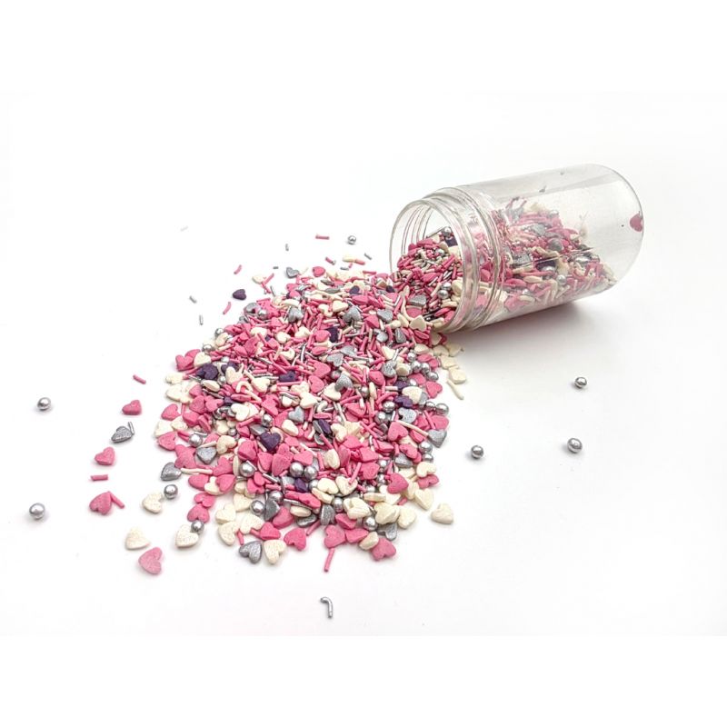 Červená symbolizuje vášnivou lásku. Bílá symbolizuje připoutanost a loajalitu. Růžová vděčnost a obdiv. Všechny tyto odstíny byly naší inspirací při tvorbě této jedinečné směsi. Tato posypka dodá eleganci a důstojnost i těm nejminimalističtějším sladkostem. Na dortu to skvěle funguje s pravými růžemi. Elegantní barvy a perličky s křupavostí zdokonalí jakýkoli pečený produkt připravený pro zvláštní příležitost, jako je například dort k výročí svatby! Rozmanitost tohoto mixu vám dává jistotu, že se srdíčka budou hodit do jakékoli dekorace. Jejich sladká a univerzální chuť osloví všechny hosty na večírku. Z vlastní zkušenosti víme, že pečivo posypané touto ozdobou je hned pryč. Na pečení budou srdíčka skvělým doplňkem, který nebude dominovat, ale naopak zvýrazní chuť. "