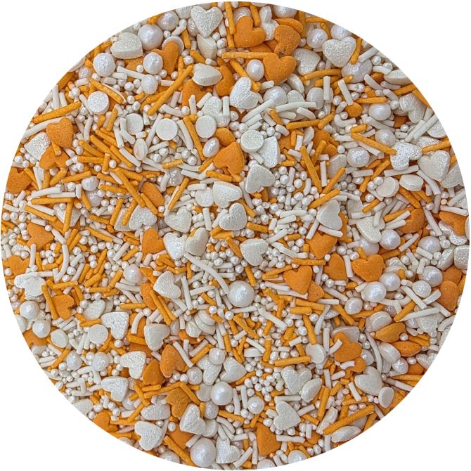 Oranžovo - bílý mix perliček, cukrových tyčinek a bílého máčku, který oceníte jako doplněk valentýnských dezertů, dortíků na babyshower, pro párty ve stylu Barbie, Halloween, apod. I LOVE CAKES v různých tvarech vám pomohou zajímavým způsobem ozdobit muffiny, dorty, koláče, dezerty, cake pops, sušenky a další sladkosti. Posypky budou krásnou ozdobou pečiva na nejrůznější párty, výročí nebo na dort k narozeninám. Cukrové posypky se budou hodit při přípravě sladkostí na sladký stůl.