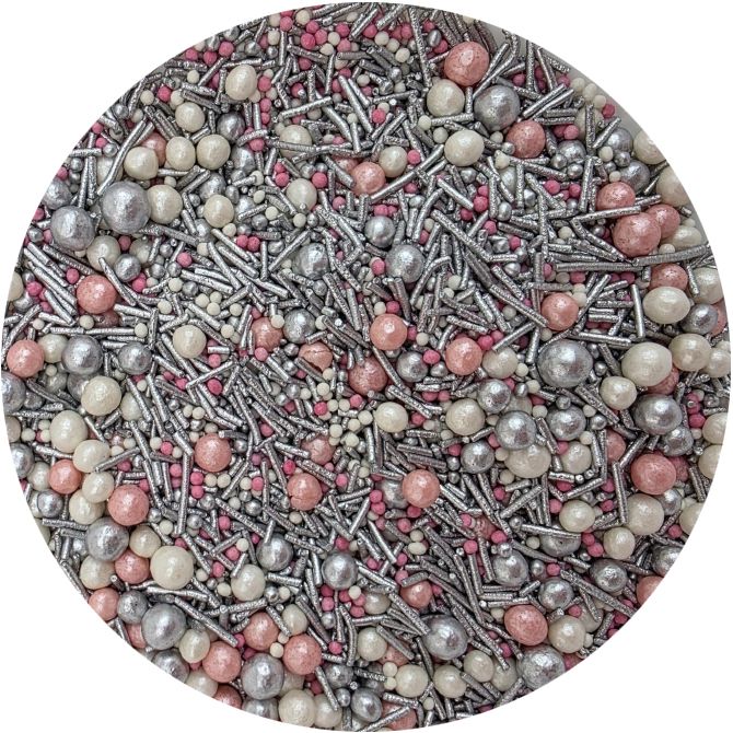Dejte svým dortům a dezertům zcela nový nádech s tímto mixem cukrového zdobení. Různobarevné perličky, stříbrné tyčinky a drobný máček vytváří stylovou kombinaci, kterou lze využít dle libosti. Můžete s nimi ozdobit cupcakes, dorty i vánoční cukroví. Posypky budou krásně vypadat na dortících nebo jiném pečivu. Ideální pro různé příležitosti, např. oslava narozenin, jmeniny, svatby, přijímání, rozlučky se svobodou, svátky. Posypky jsou baleny v praktické nádobě pro snadné dávkování a skladování. Skladujte na chladném a suchém místě mimo dosah slunečního záření. Pokud zdobení nasypete na vláčný krém, vlhkost z něj může posypek změkčit. Ale pozor, pokud bude zdobení na vlhkém krému delší dobu, může se z posypku uvolnit i barvivo a to na povrch krému. Pokud chcete, aby větší části dekorace drželi například na potahovém dortu, můžete tento druh zdobení k dortům lepit polotuhou čokoládou, nebo glazurou na perníčky. s posypky pracujte nejlépe nad miskou, či plechem s okrajem. Složení: bílý cukr, celozrnná mouka, rýžová mouka, suchý vaječný bílek, škrobový sirup, rafinovaný palmový olej, modifikovaný škrob, zahušťovadla: E412, E415, E466, E414; leštící látka kapol (šelak, rostlinný olej), mastek, kyselost regulátor kyselina citronová (E330), konzervant kyselina sorbová (E200), potravinářské aroma "Vanilka", potravinářská barviva: E122, E174, E124 Výživová (potravinová) hodnota 100 g výrobku: tuky - 3,4 g, z toho nasycené 0,19 g, sacharidy – 84,6 g, z toho cukry – 59 g, bílkoviny – 3,6 g, sůl – 0,001 g Energetická hodnota (kalorie) na 100 g výrobku: 375 kcal (1537 kJ).