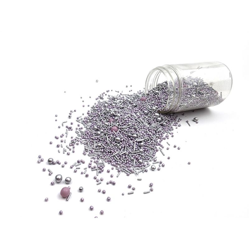 Objevte stříbrný poklad, který můžete použít jako jedinečnou jedlou dekoraci vašich dortů, pohárů, palačinek, atd. Krásné cukrové posypky I LOVE CAKES v různých tvarech vám pomohou zajímavým způsobem ozdobit muffiny, dorty, koláče, dezerty, cake pops, sušenky a další sladkosti. Stříbrné posypky budou krásnou ozdobou pečiva na nejrůznější párty, výročí nebo na dort k narozeninám. Cukrové posypky se budou hodit při přípravě sladkostí na sladký stůl. Stříbrné cukrové posypky jsou baleny v praktické nádobě pro snadné dávkování a skladování. Skladujte na chladném a suchém místě mimo dosah slunečního záření. Pokud zdobení nasypete na vláčný krém, vlhkost z něj může posypek změkčit. Ale pozor, pokud bude zdobení na vlhkém krému delší dobu, může se z posypku uvolnit i barvivo a to na povrch krému. Pokud chcete, aby větší části dekorace drželi například na potahovém dortu, můžete tento druh zdobení k dortům lepit polotuhou čokoládou, nebo glazurou na perníčky. s posypky pracujte nejlépe nad miskou, či plechem s okrajem.
