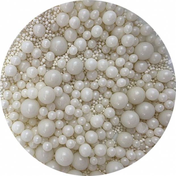 Sypání má podobu různě velkých perliček v bílé barvě. Jedná se o sladký posyp z řady unikátních produktů od ILOVECAKES. Nemění chuť zdobených výrobků, je vyroben z přírodních barviv a má chuť cukrové pasty. Jedná se o velmi univerzální zdobení, ideální na dekorování cupcaků, sušenek, perníčků, muffinů, dortů, zákusků, pečiva, dortů, pralinek, lanýžů, čokolády, zmrzliny a mnoha dalších sladkých výrobků, zejména těch s krémy a polevou. Je vhodný pro každou příležitost: svatba, karneval, narozeniny, Den matek a mnoho dalších. Baleno v praktické šroubovací dóze. Pokud zdobení nasypete na vláčný krém, vlhkost z něj může posypek změkčit. Ale pozor, pokud bude zdobení na vlhkém krému delší dobu, může se z posypku uvolnit i barvivo a to na povrch krému. Pokud chcete, aby větší části dekorace drželi například na potahovém dortu, můžete tento druh zdobení k dortům lepit polotuhou čokoládou, nebo glazurou na perníčky. s posypky pracujte nejlépe nad miskou, či plechem s okrajem.